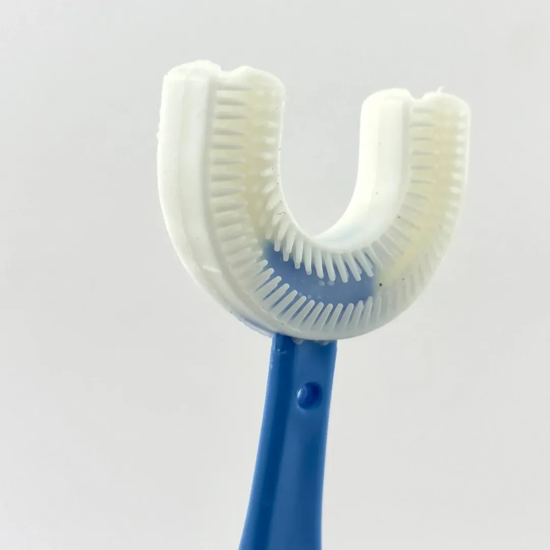 مسواک چرخشی سری یو شکل و سیلیکونی مسواك فرم دندان مسواک زدن بسيار راحت و آسان براي كودكان داراي فرچه دوطرفه مخصوص تميز كردن جلو و پشت دندان ابعاد مناسب دستان كودک قابل استفاده با انواع خمير دندان مناسب سن 6 سال فاقد مواد مضر و سمی.